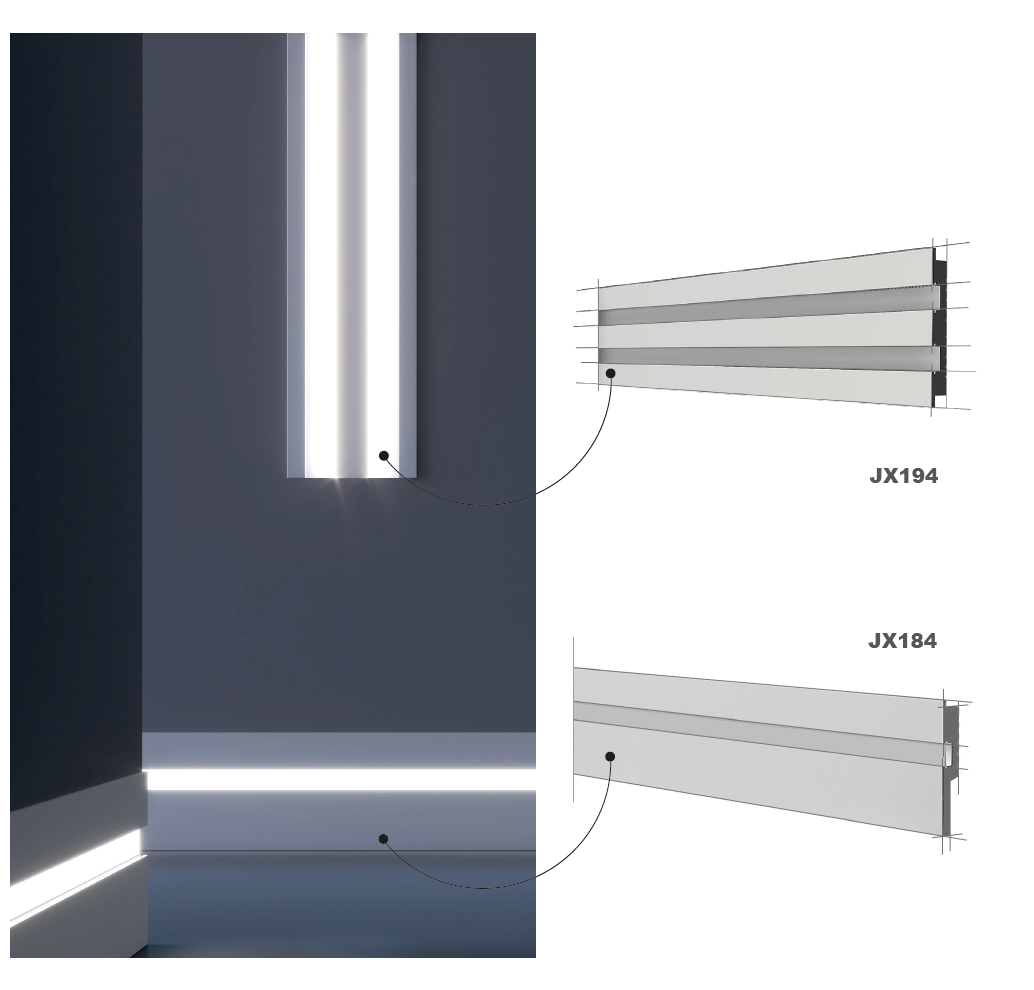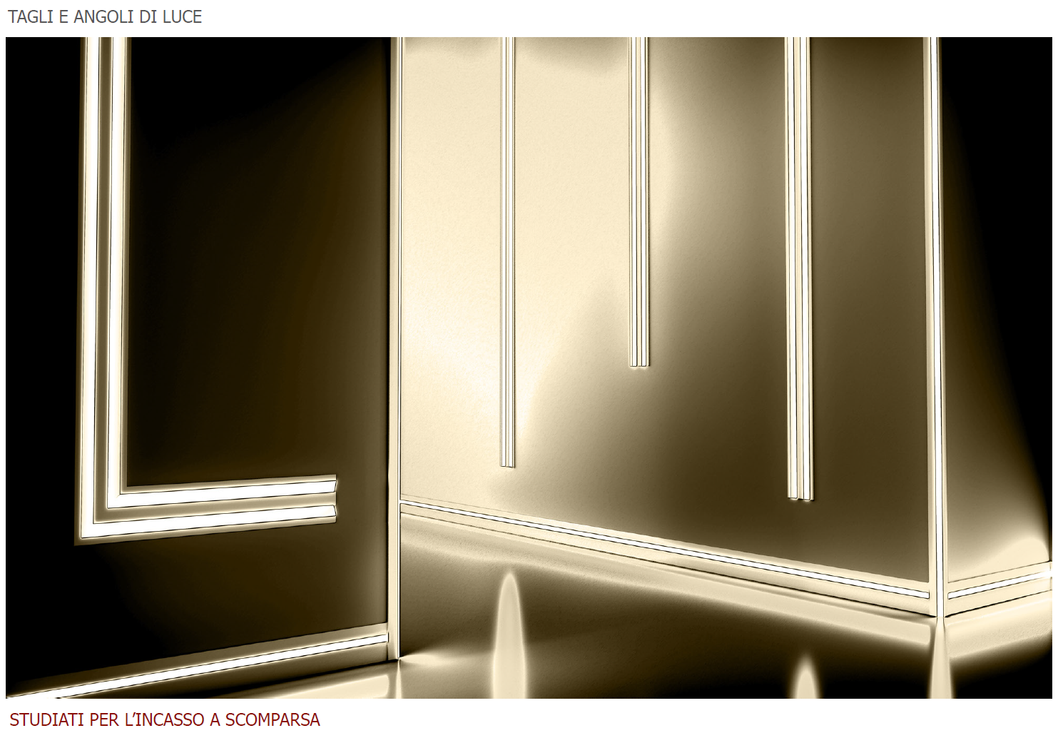 I profili della linea si possono adattare ovunque, progettando tagli di luce in un ambiente nuovo, applicando i pannelli in cartongesso lasciando tra di loro lo spazio necessario per incassare i profili;